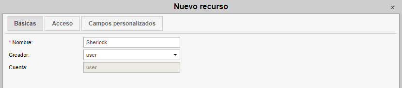 Si todos los campos están llenados correctamente, el botón OK se hace activo. Apriételo para guardar los cambios. En el historial aparecerá el mensaje correspondiente. El creador del recurso recibe automáticamente el acceso total al recurso creado.