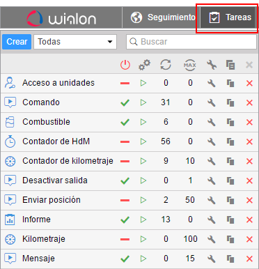 Si el usuario actual no tiene el derecho de acceso a Utilizar unidad en tareas, notificaciones, rutas, repetidores con respecto al recurso a que pertenece una tarea, unas acciones con ésta serán imposibles (activar/desactivar, modificar, eliminar).