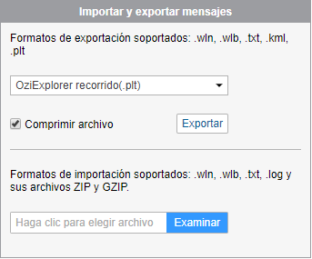 Wialon permite realizar la exportación/importación de mensajes. Solo se puede hacerlo con los mensajes del primer tipo, con los mensajes de datos.