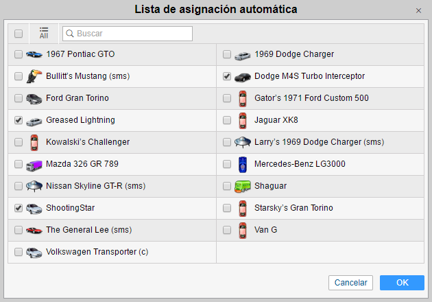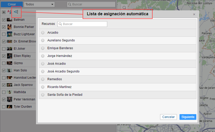 ) y cree para cada recurso su lista de unidades a que pueden asignarse los pasajeros de la lista automáticamente.