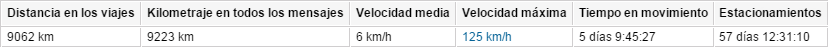 • Kilometraje en los viajes — el kilometraje en el período del informe considerando la detección de viajes.