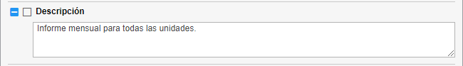 En la sección Descripción, puede introducir un texto que se muestra en la descripción emergente al apuntar con el cursor al nombre de la plantilla del informe. El texto no debe contener más de 10 000 símbolos.