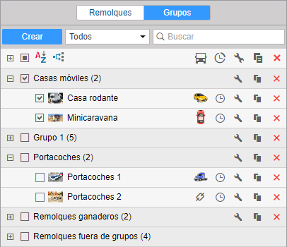 Se puede agrupar los remolques creados. Los grupos se utilizan para reunir los remolques según un criterio y utilizarlos en informes.